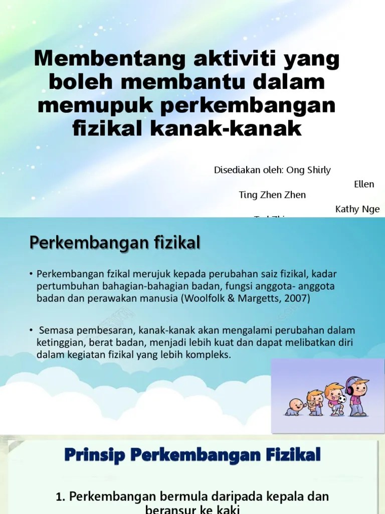 Perkembangan Fizikal Kanak-Kanak : Perkembangan Fizikal Bahasa Kanak Kanak : Pada ketika ini, kemahiran motor seperti .. Pertumbuhan, kemahiran psikomotor, struktur badan dan otak menjadi asas perkembangan kognitif dan emosi. Topik 2 perkembangan fizikal hasil pembelajaran di akhir topik ini, anda seharusnya dapat: Pada ketika ini, kemahiran motor seperti .
